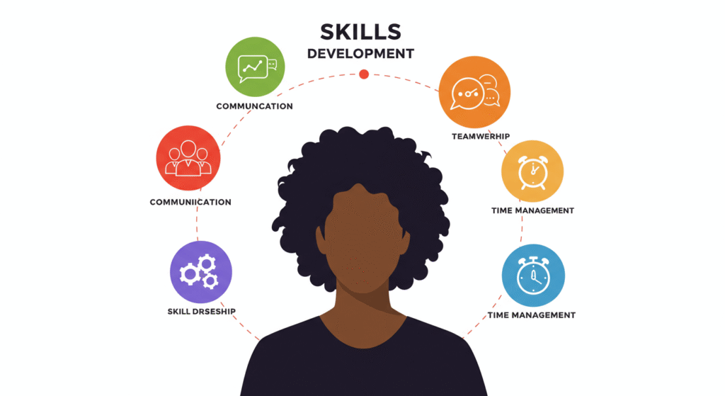 - مهارات التواصل: تطوير القدرة على التعبير عن الأفكار بوضوح والاستماع الفعال.